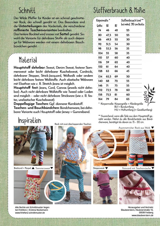 Papierschnittmuster Wilder Pfeffer Kinder