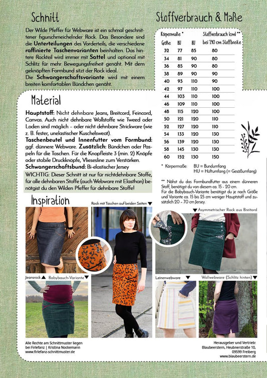 Papierschnittmuster Wilder Pfeffer Damen Webware