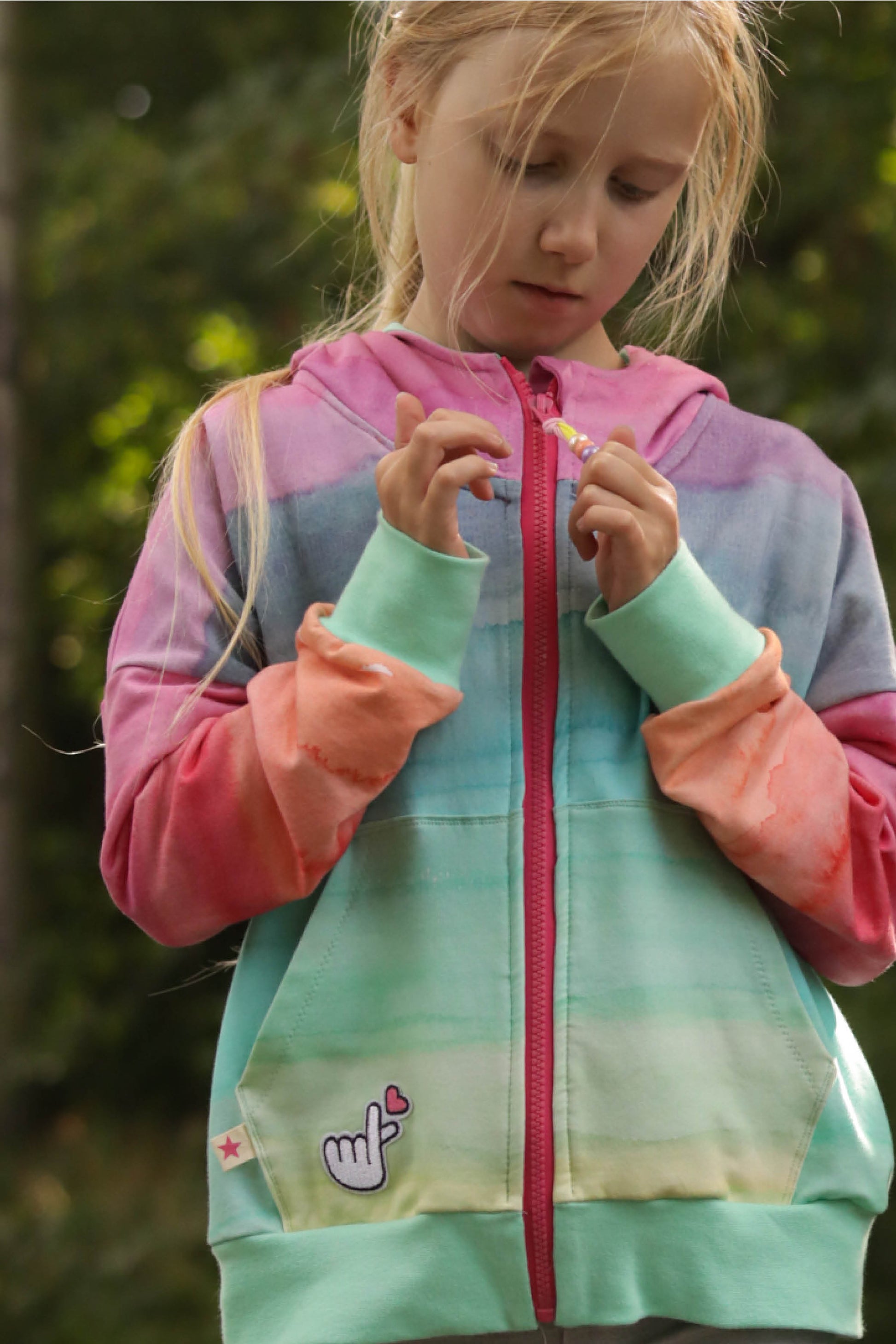 Mit diesem Add-On entsteht aus dem Sweater Macadamia im Nu eine kuschelige Sweatjacke. Aus leichtem Sommersweat ist sie perfekt zum Überziehen im Sommer oder als Ganzjahresbegleiter für Drinnen. Aus wärmeren Stoffen, wie Fleece oder Kuschelsweat ist sie auch eine tolle Outdoorjacke für den Herbst. Wenn du schon ein bisschen Näherfahrung hast. ist die Jacke leicht zu nähen.