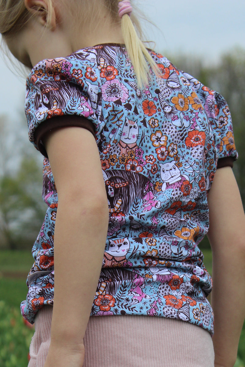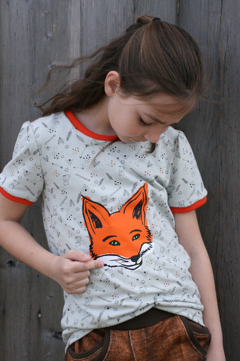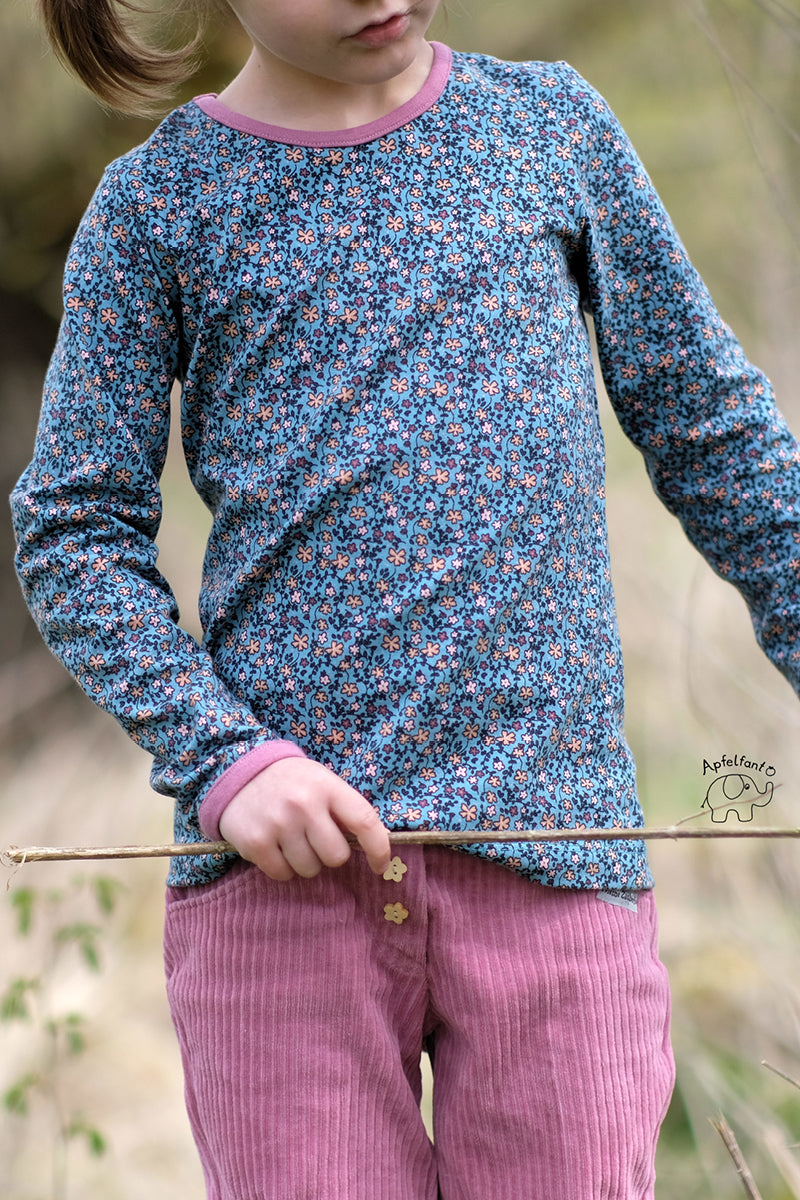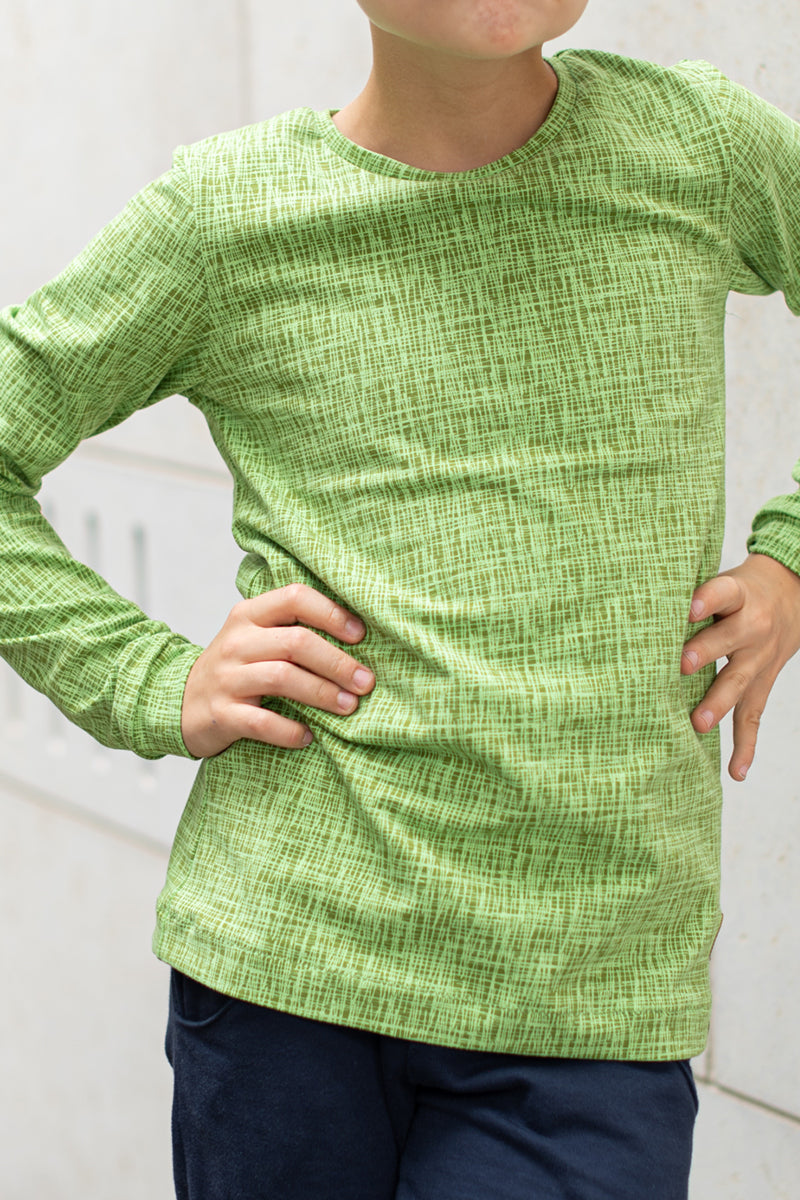 Mit dem kostenlosen Schnittmuster Immergrün von Firlefanz kannst du ein schmal geschnittenes Basic Shirt für Kinder selber nähen.