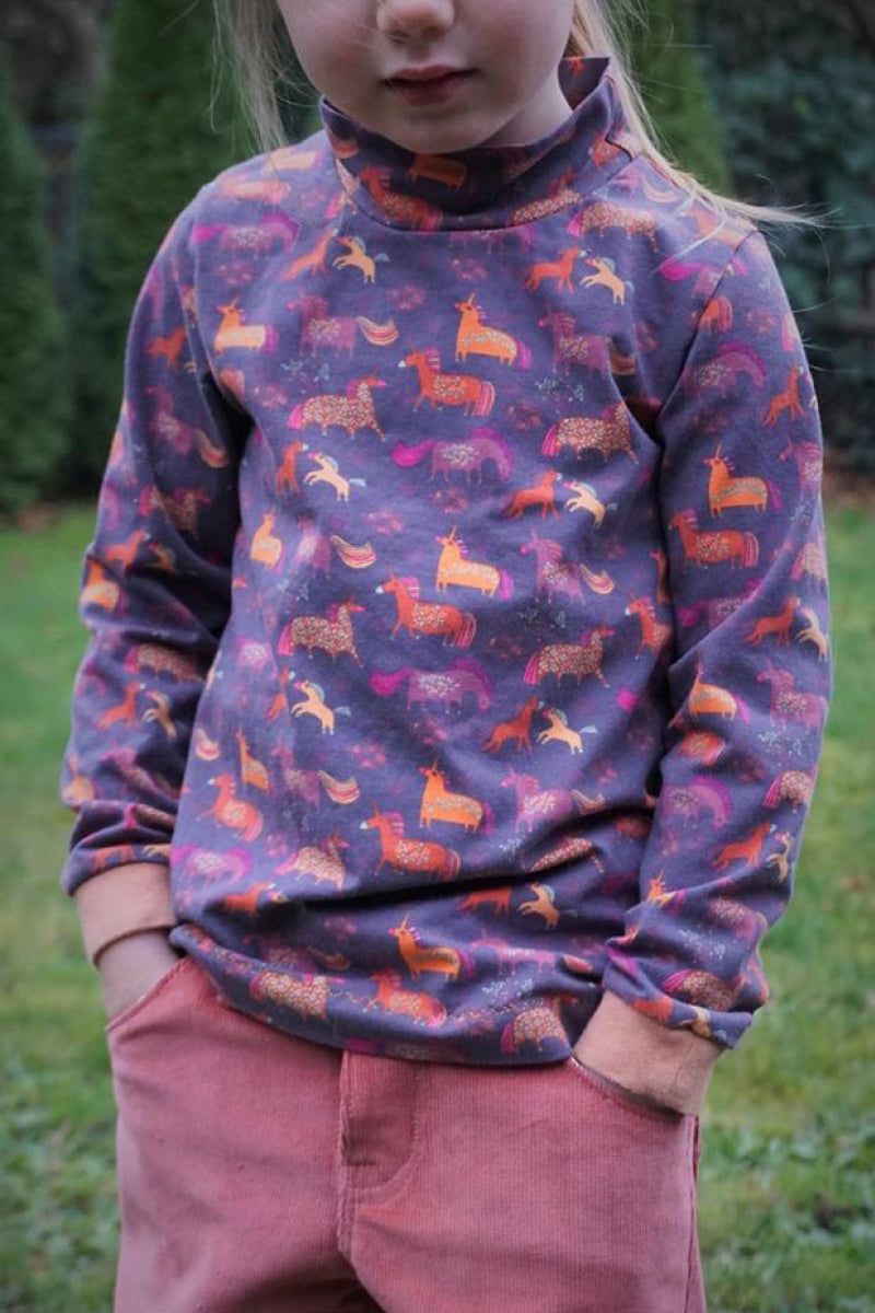 - normaler Halsbündchenabschluss, schmaler Kragen, hoher Rollkragen, Bubikragen (Mädchen)